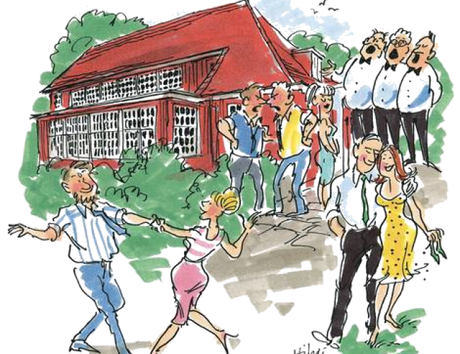 På denne aften var der tradition for at man parvis – en af hvert køn – skulle bruge pausen i musikken til at gå en tur i skovanlægget for at finde hvor nattergalen slog sine smukke triller.